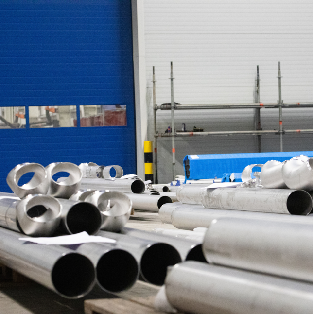 Turbo Technik wurde neben der Stahlbeschaffung damit beauftragt die vier Wärmepumpen mit einen Rohrleitungssystem zu installieren und zu verbinden. Hierbei kommen Rohre unterschiedlichster Dimensionen und Materialien zum Einsatz.